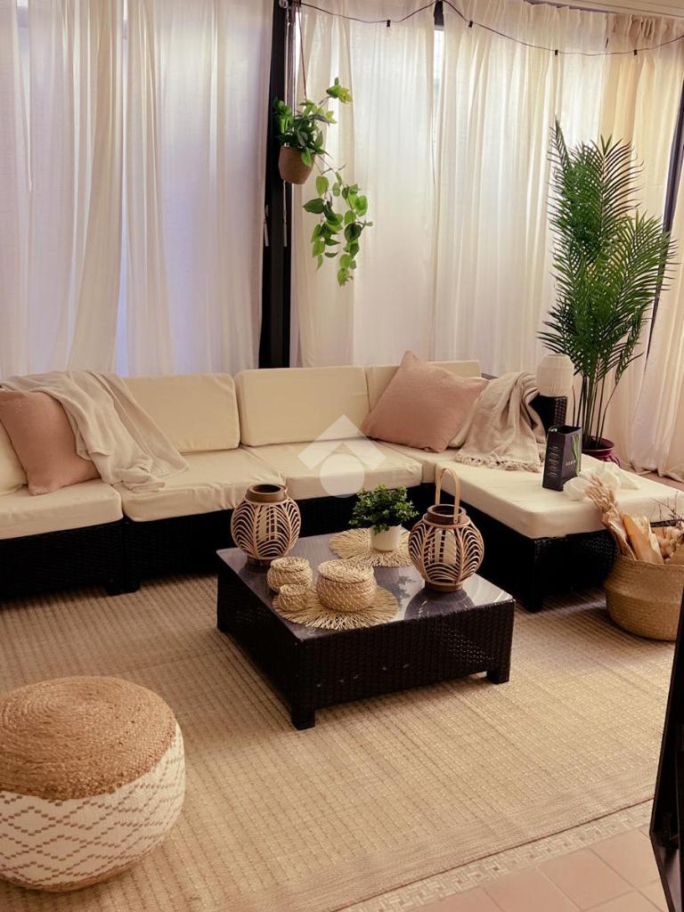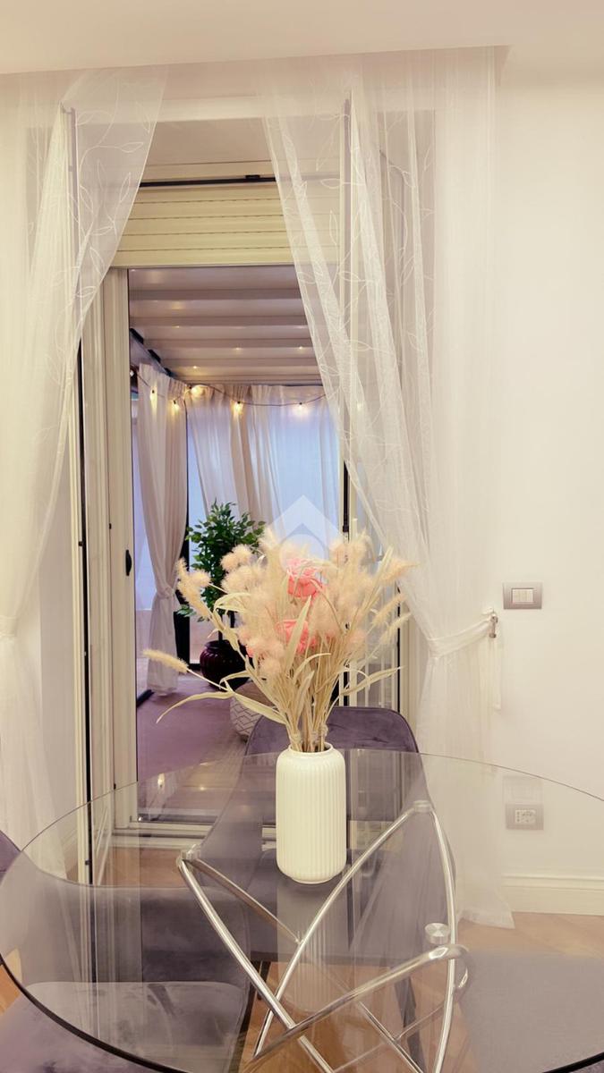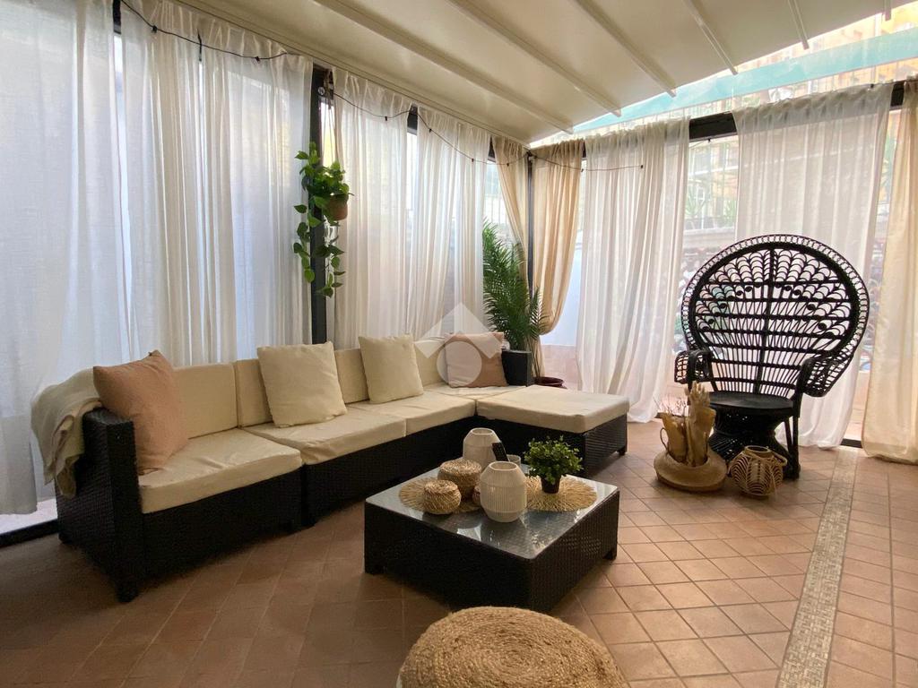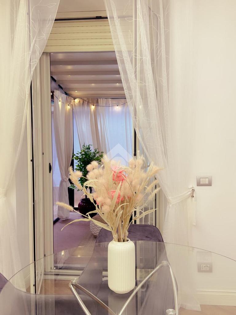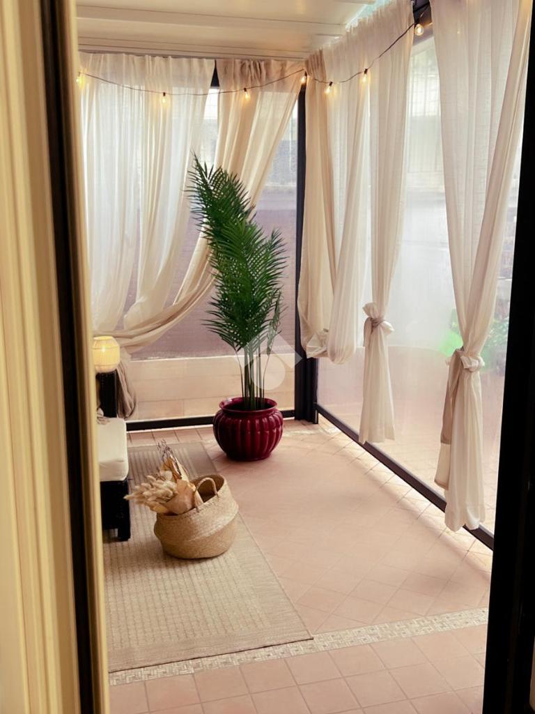 Nota distintiva dell'abitazione è l'ampio terrazzo, dotato di pergotenda di forte impatto e di una porzione chiusa con infisso e climatizzata (termosifone e condizionatore), che crea uno spazio polifunzionale - ideale come garden-room, studio o area relax - utilizzabile in ogni stagione;