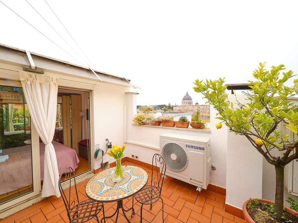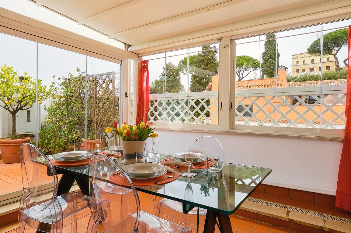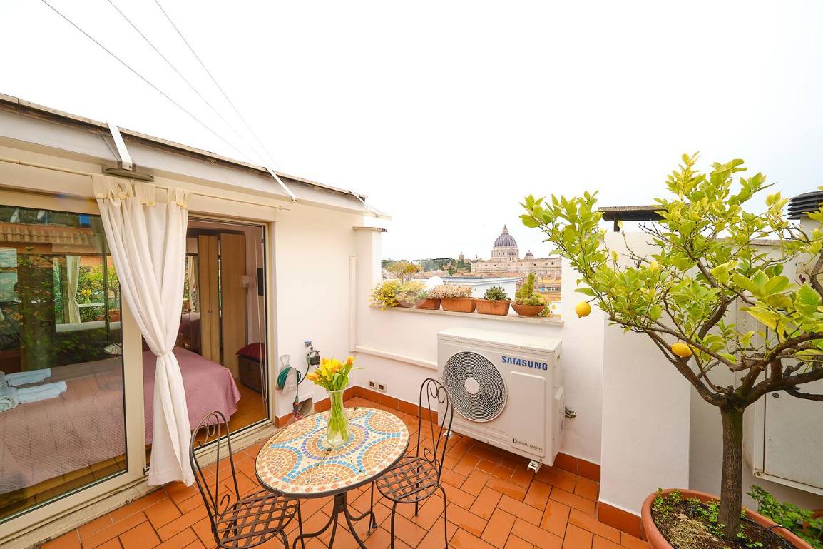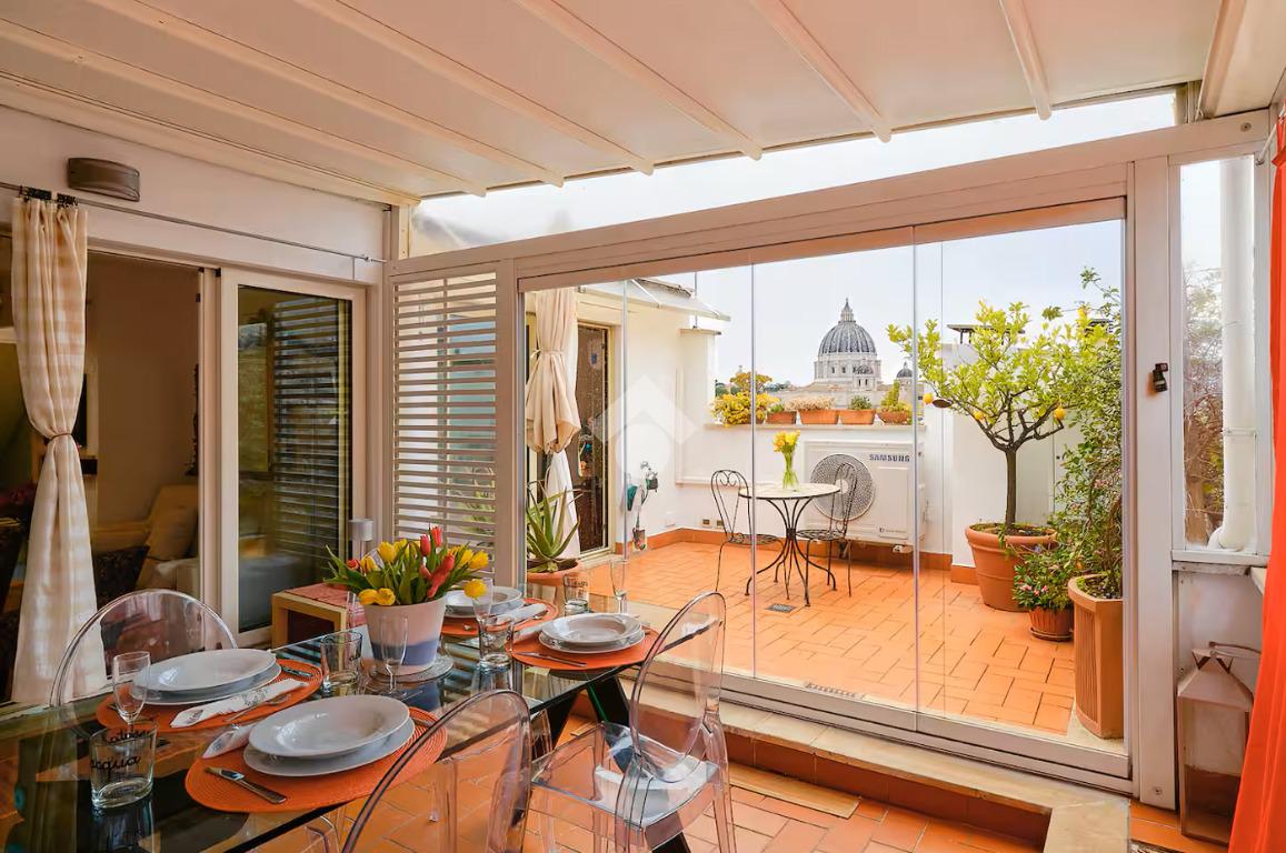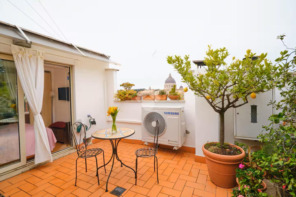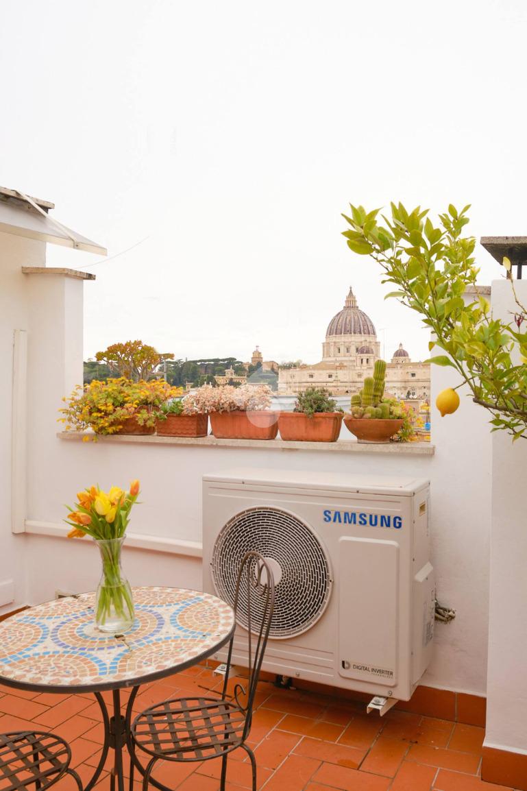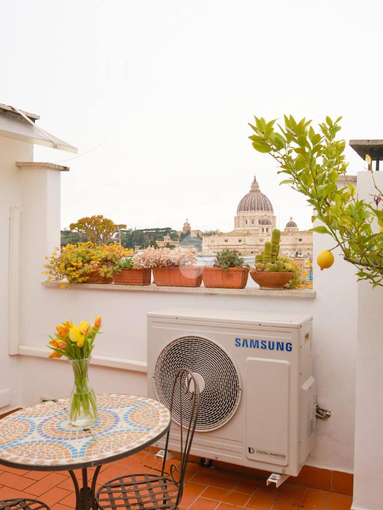 - Per il terrazzo, ampio e vivibile, con affacci aperti su San Pietro, sul Gianicolo e sulle Mura Aureliane: uno spazio esterno raro in zona, ideale per cene all’aperto, momenti di relax e per godere ogni giorno di un panorama d’eccezione;