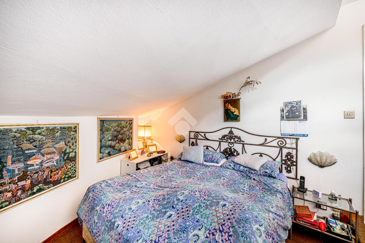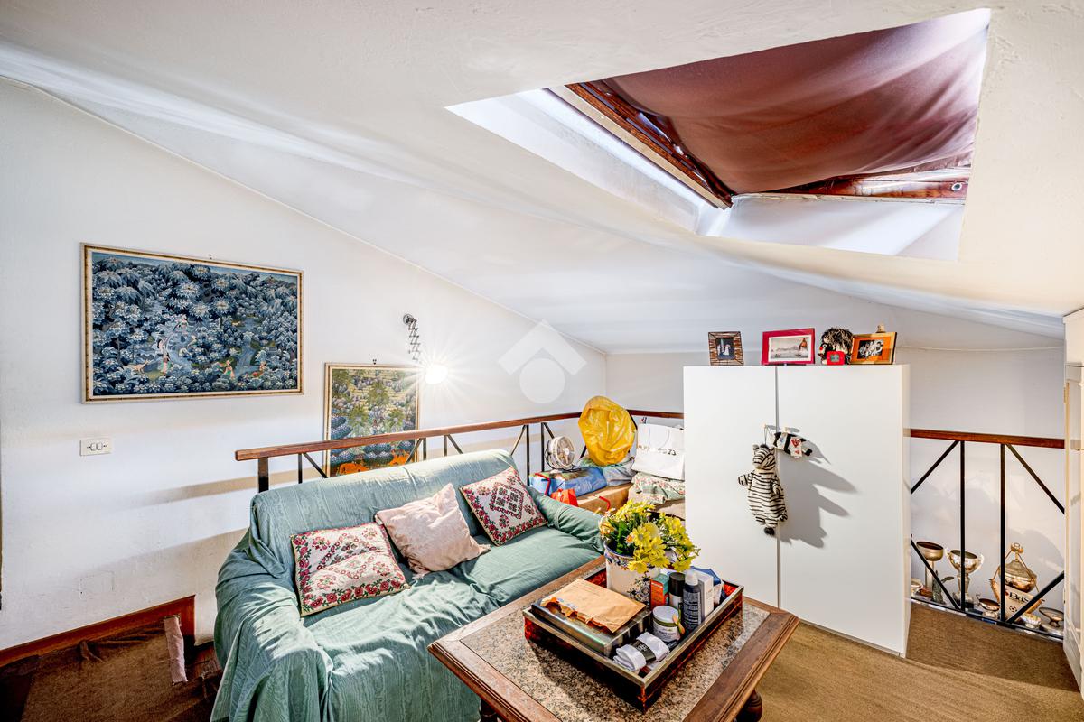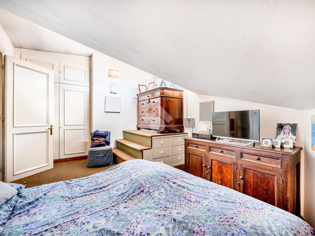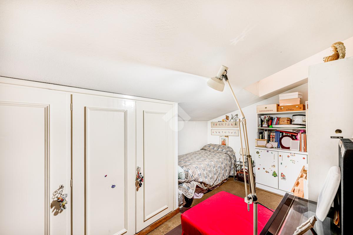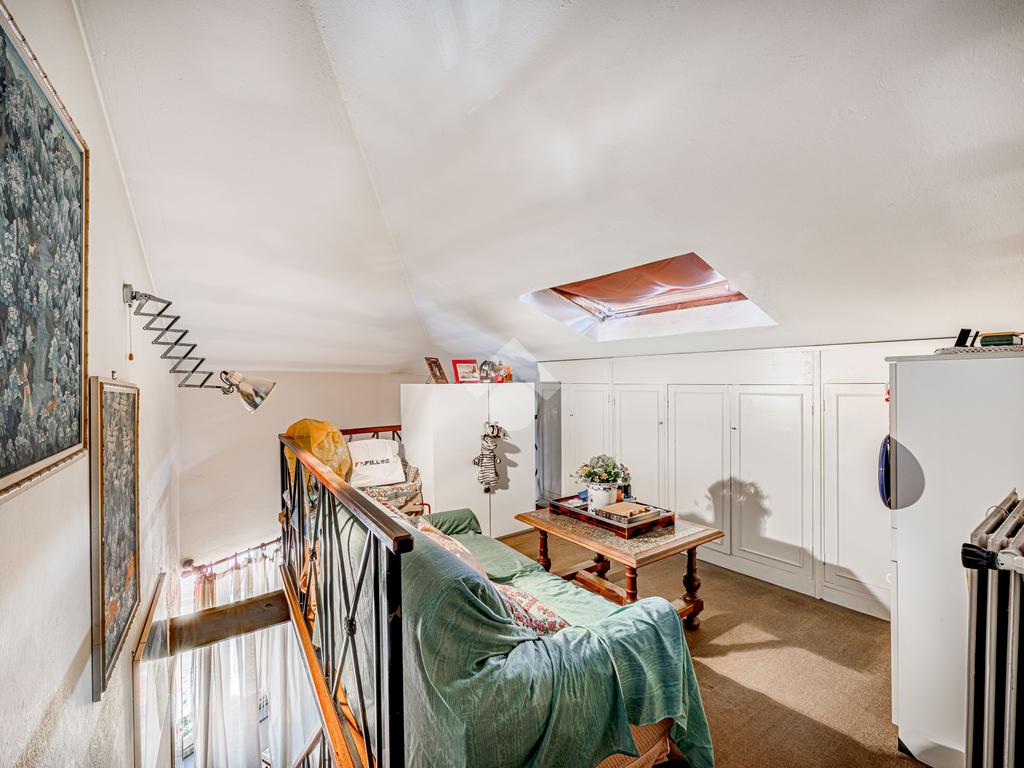 Una scala interna accompagna al piano superiore, dove si apre un ampio spazio di accoglienza, versatile e ideale come ulteriore camera o studio; completano il livello una camera matrimoniale, una cameretta e un bagno finestrato.