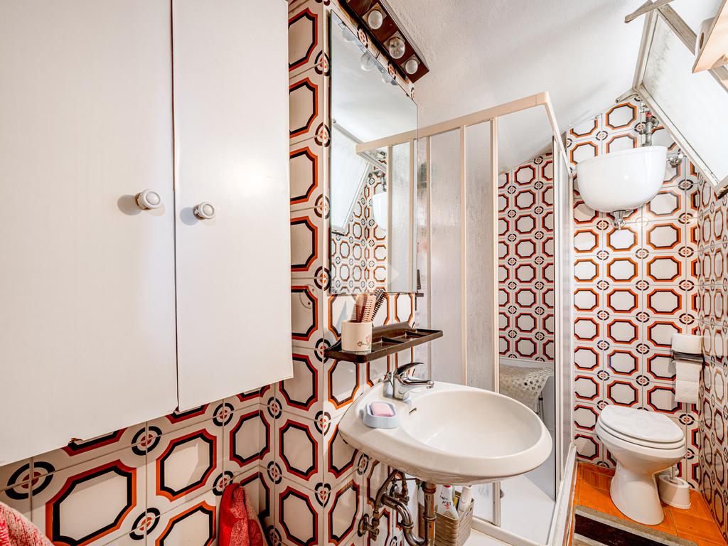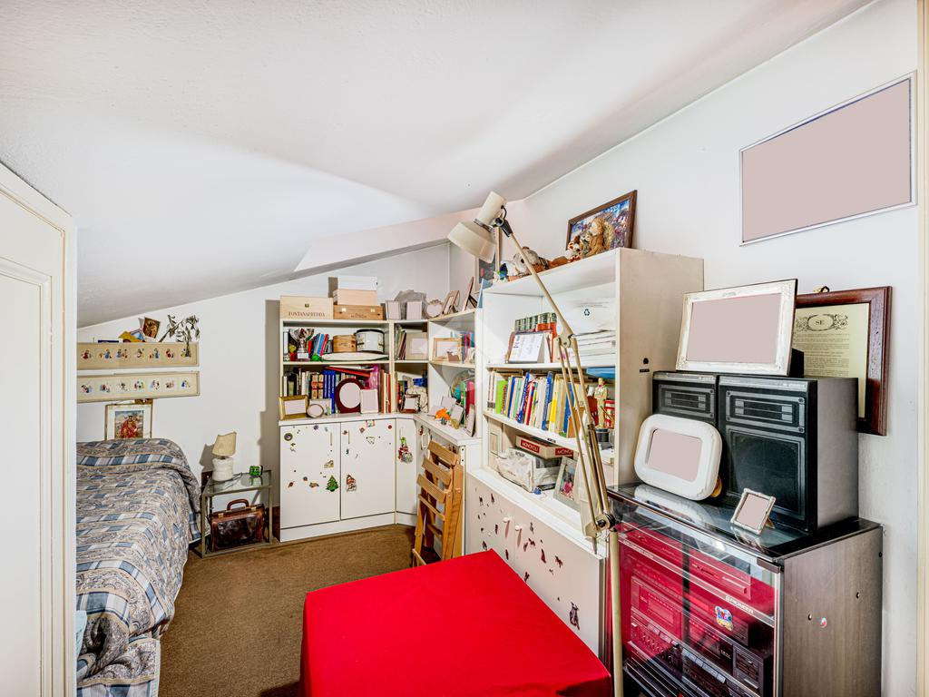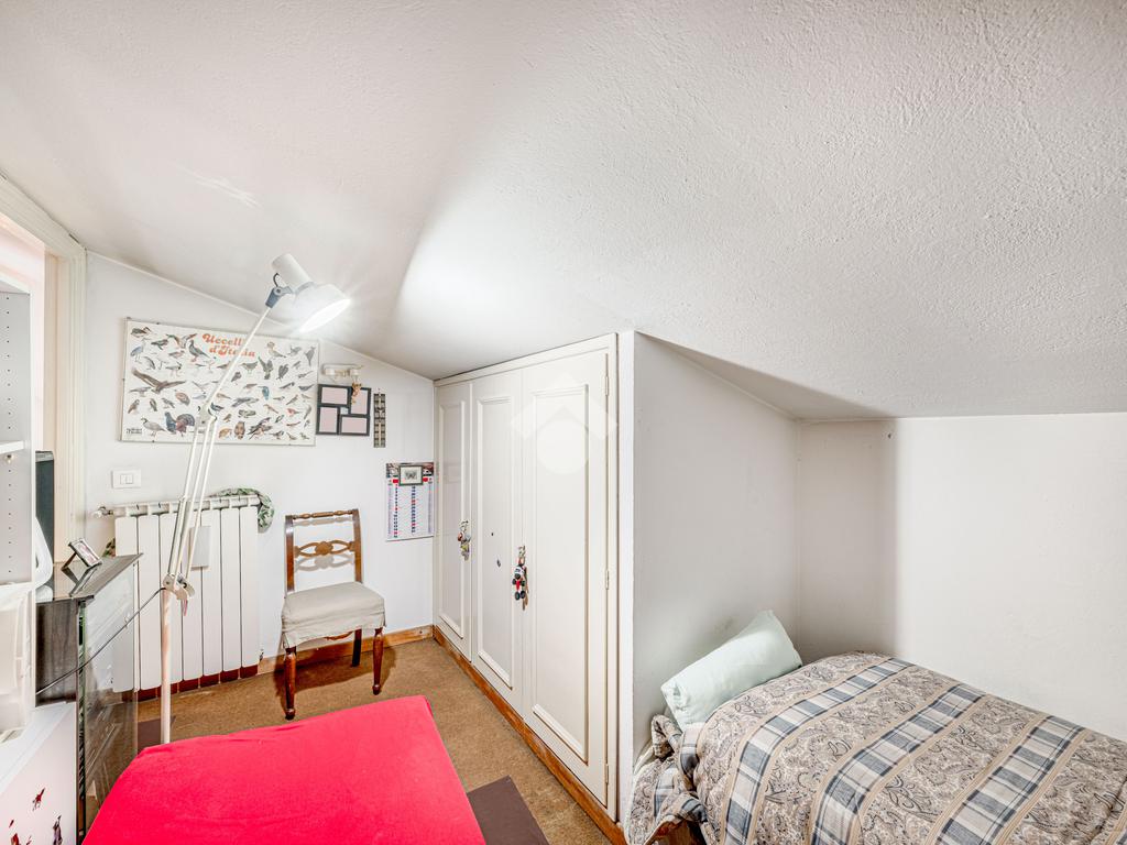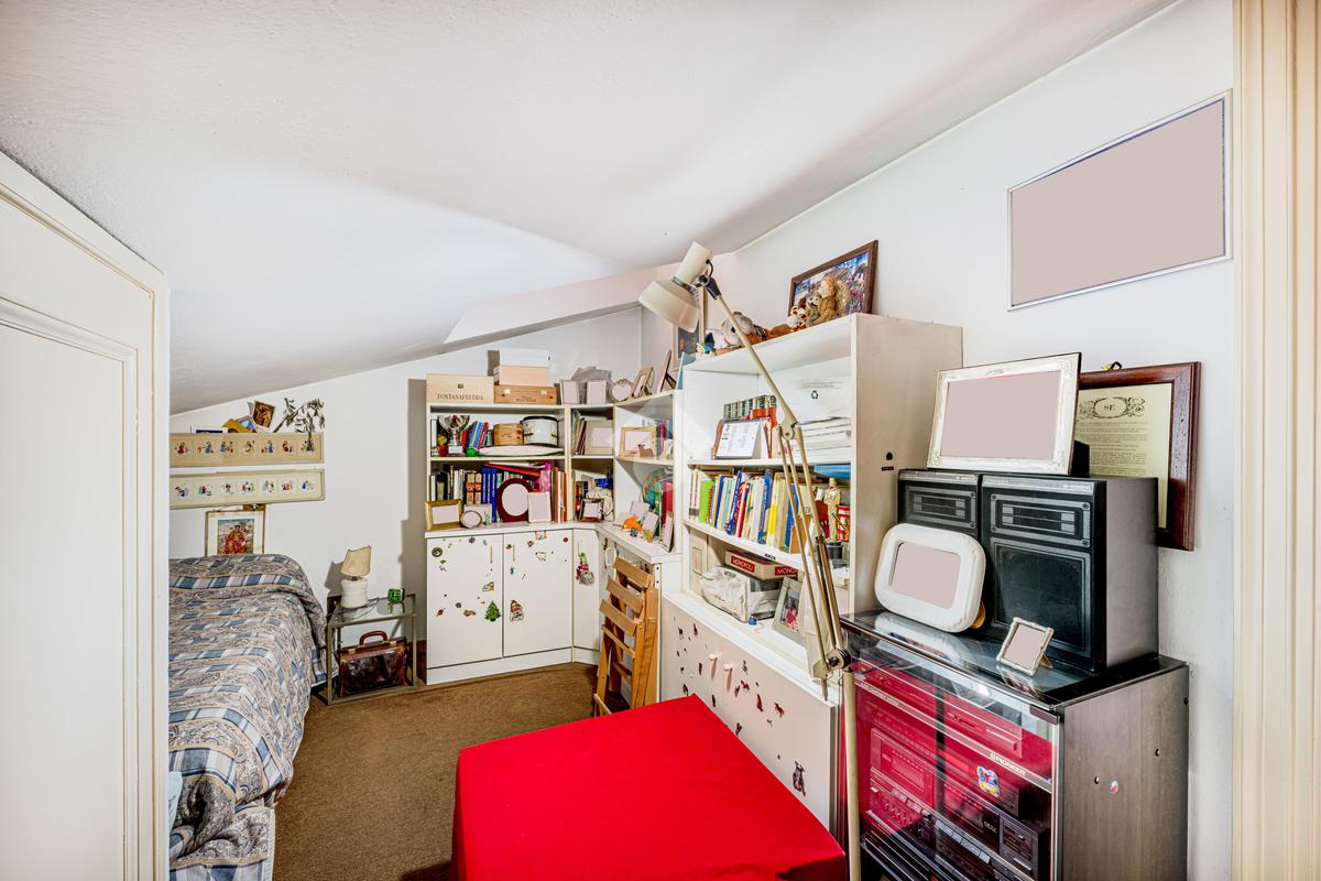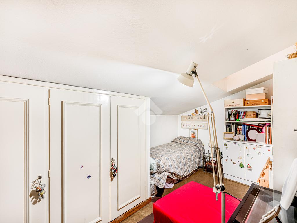 Una scala interna accompagna al piano superiore, dove si apre un ampio spazio di accoglienza, versatile e ideale come ulteriore camera o studio; completano il livello una camera matrimoniale, una cameretta e un bagno finestrato.