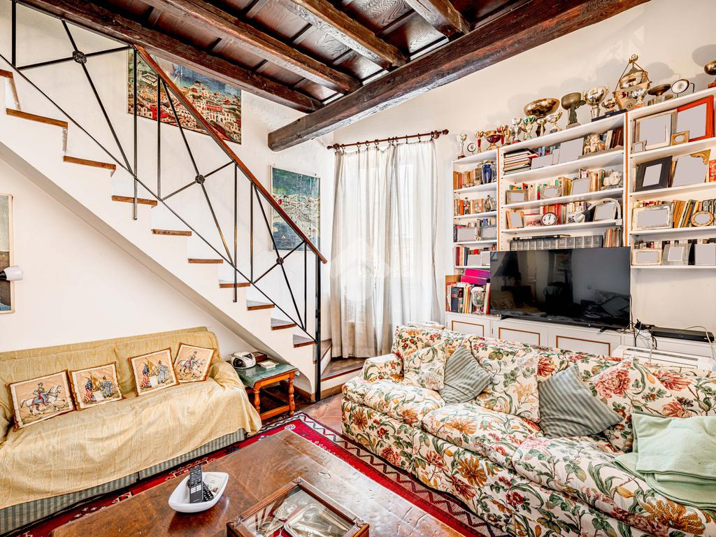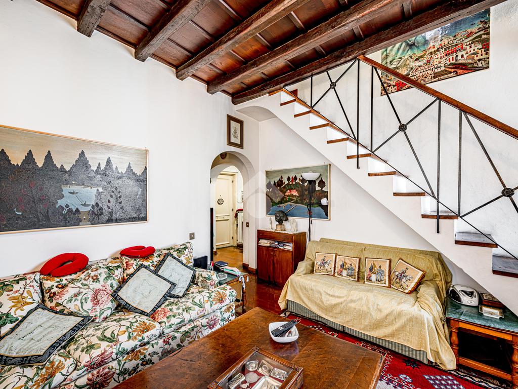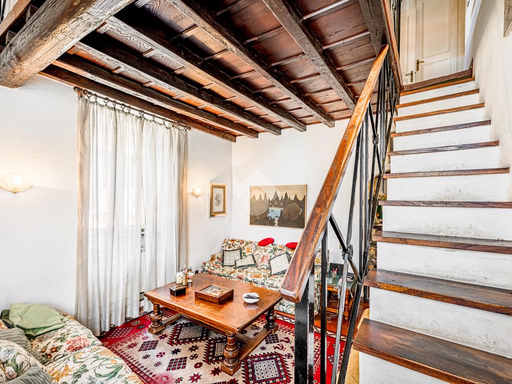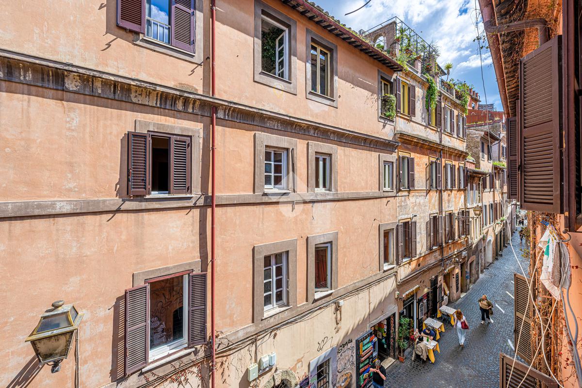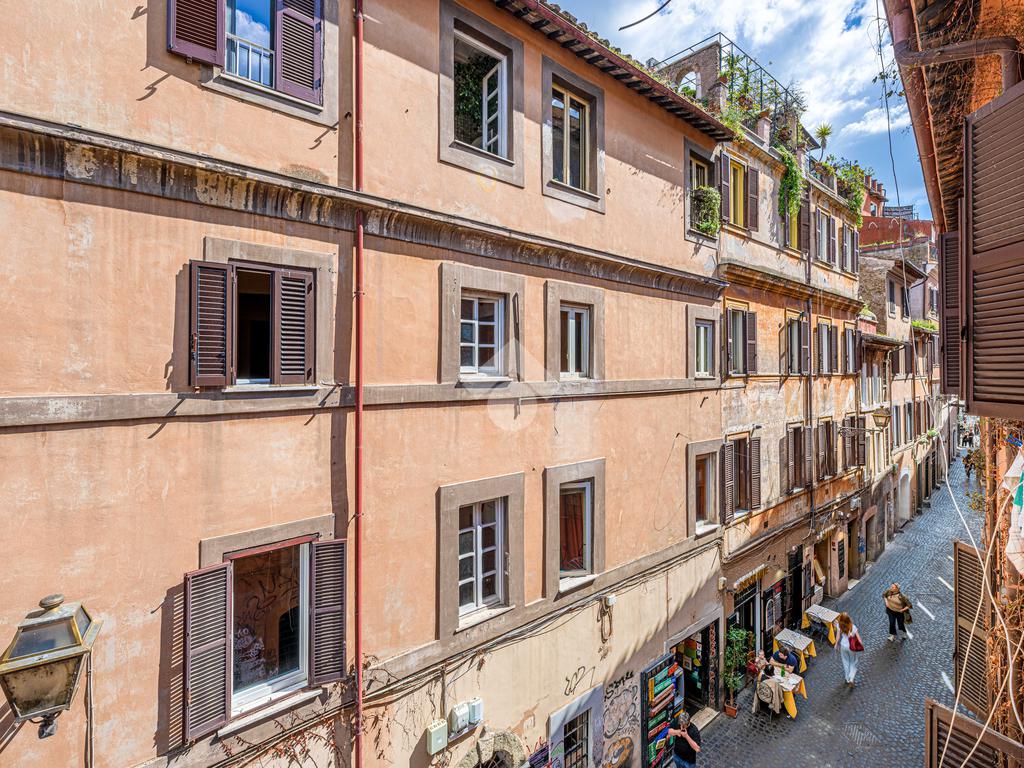 L’immobile, di ampia metratura, è disposto su due livelli al secondo e terzo piano (ultimo) di un affascinante stabile d’epoca del ’700, che esprime pienamente il fascino autentico e senza tempo della Trastevere storica, servito da ascensore, vera rarità per la zona.