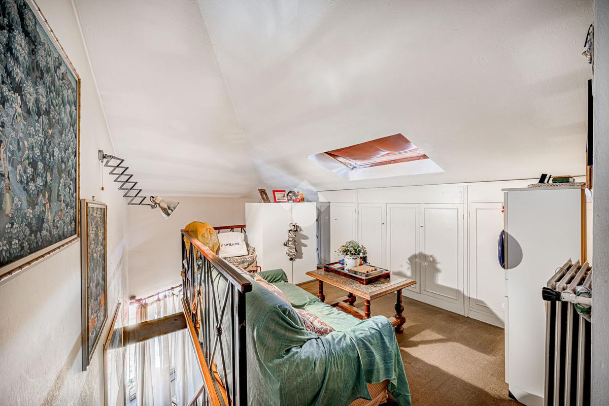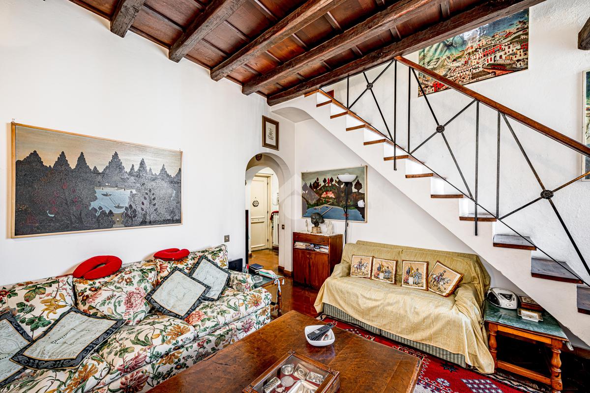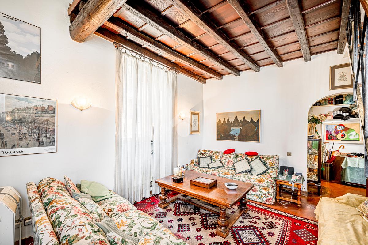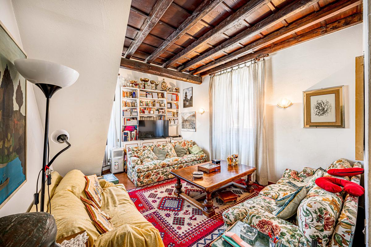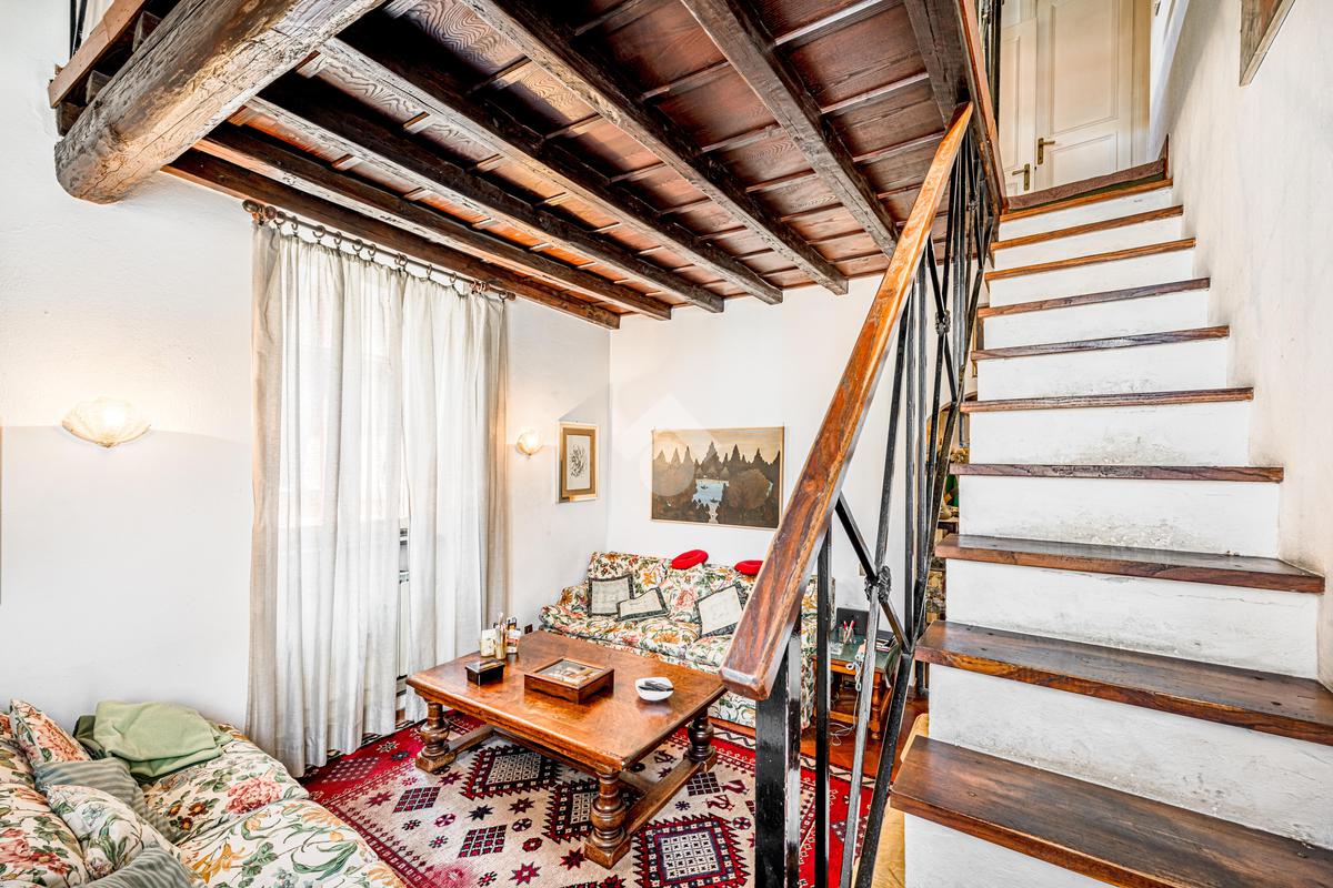 L’immobile, di ampia metratura, è disposto su due livelli al secondo e terzo piano (ultimo) di un affascinante stabile d’epoca del ’700, che esprime pienamente il fascino autentico e senza tempo della Trastevere storica, servito da ascensore, vera rarità per la zona.
