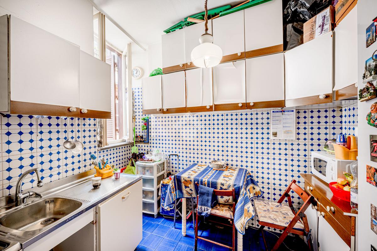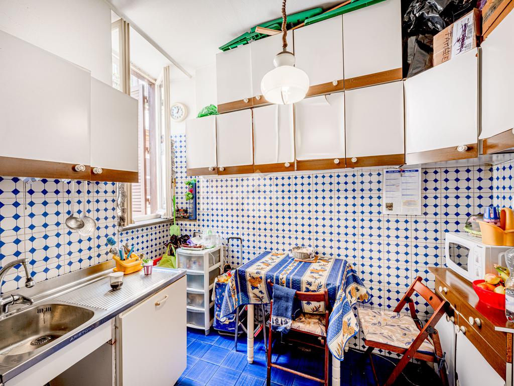 Completano il piano una cucina abitabile, una camera attualmente adibita a zona pranzo con affaccio su Via Garibaldi ed un bagno finestrato.