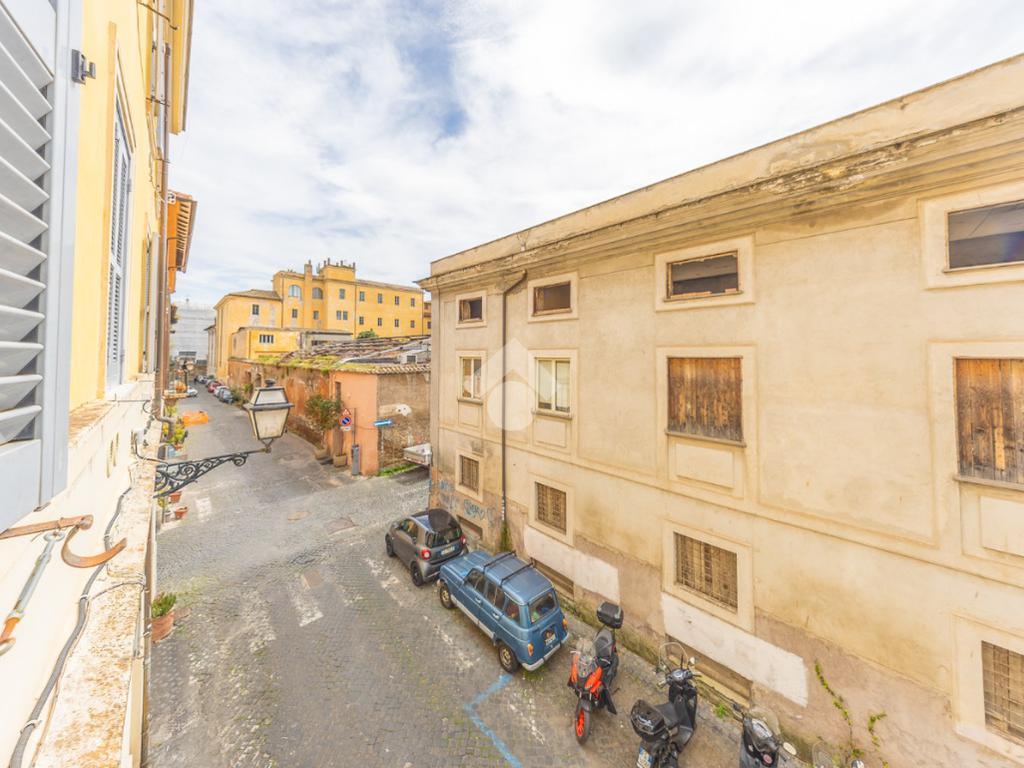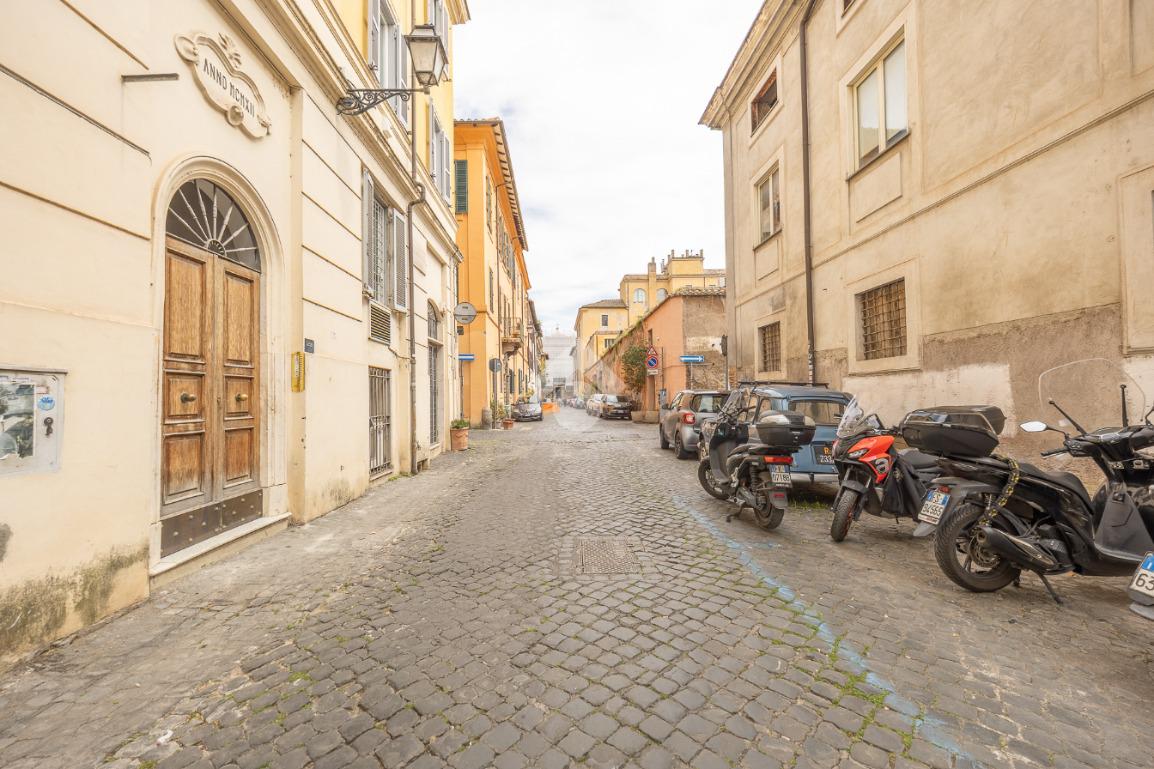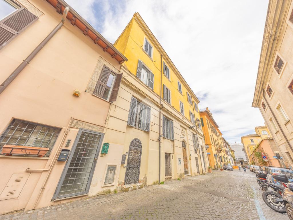 L’immobile è posto all’interno di un elegante stabile d’epoca, che conserva tutto il fascino e il carattere tipici del contesto trasteverino.