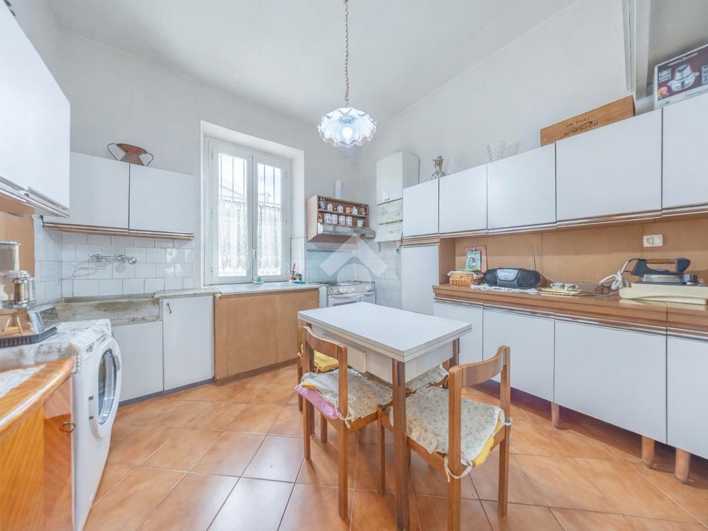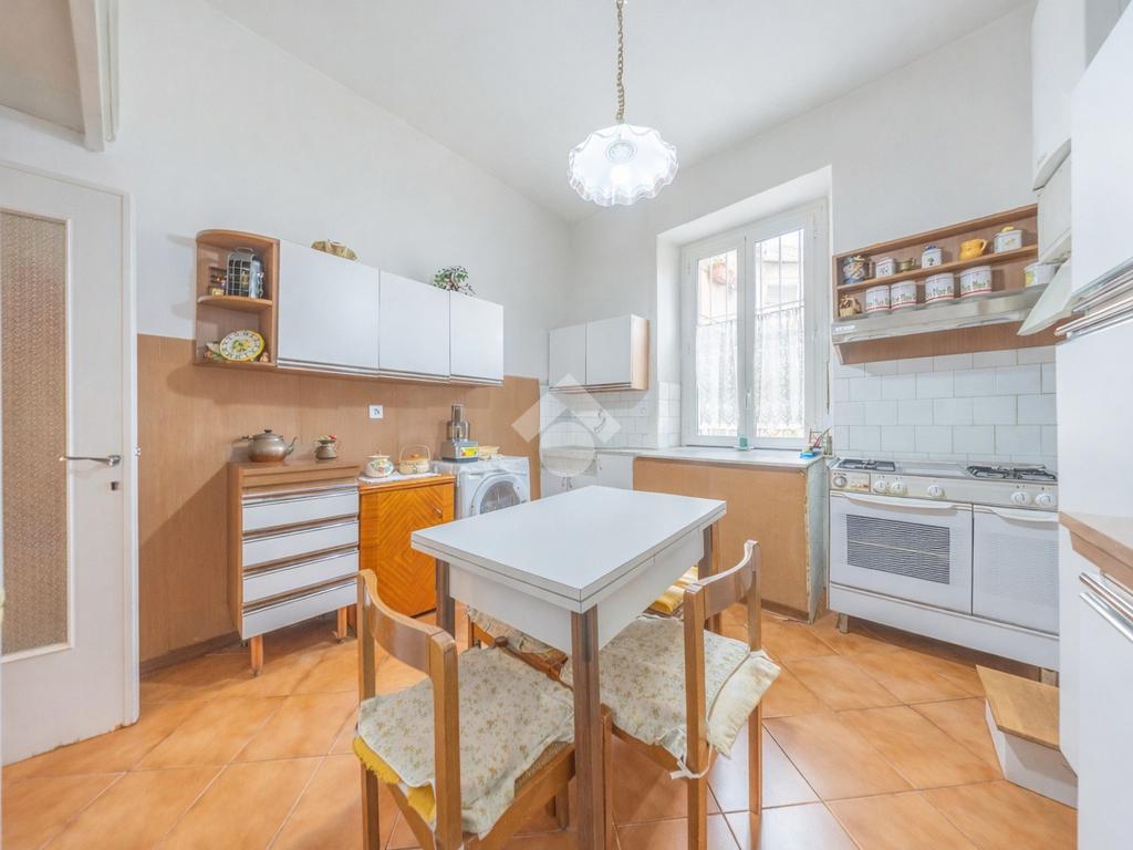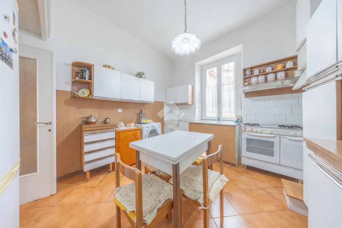 L’appartamento è composto da ingresso, soggiorno con affaccio sulla via e scorcio sulla statua di Garibaldi al Gianicolo, due ampie camere da letto matrimoniali, grande cucina abitabile di forma quadrata con caratteristici affacci tipicamente trasteverini, impreziosita da elementi storici di grande fascino come bancone e lavabo in marmo e servizio ampio e finestrato con vasca.